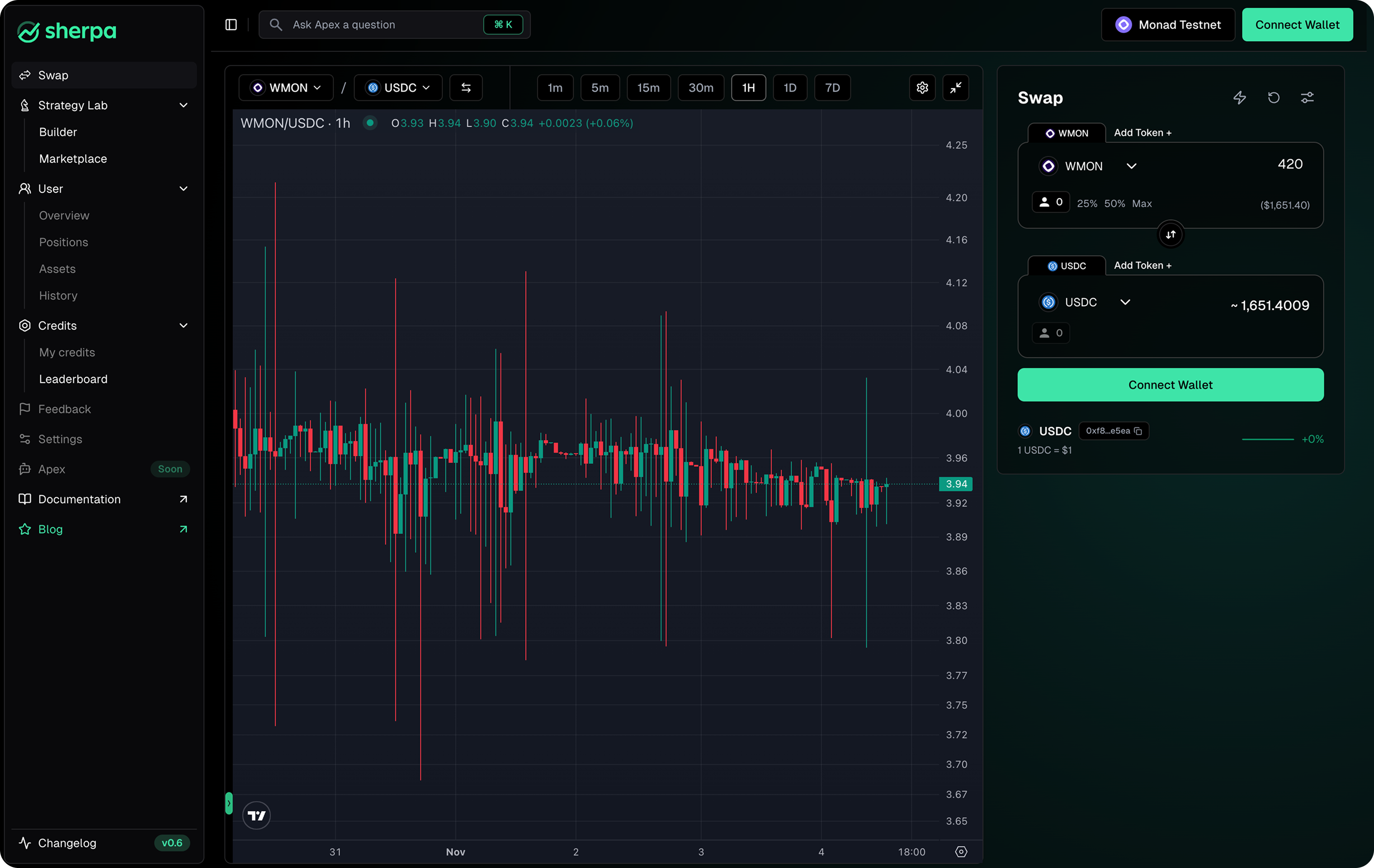 DeFi automation platforms require swaps at nearly every layer of the stack, from regular swaps, DCAs, and portfolio rebalancing. Swap API provides robust trading infrastructure to power Monad swaps on Sherpa.