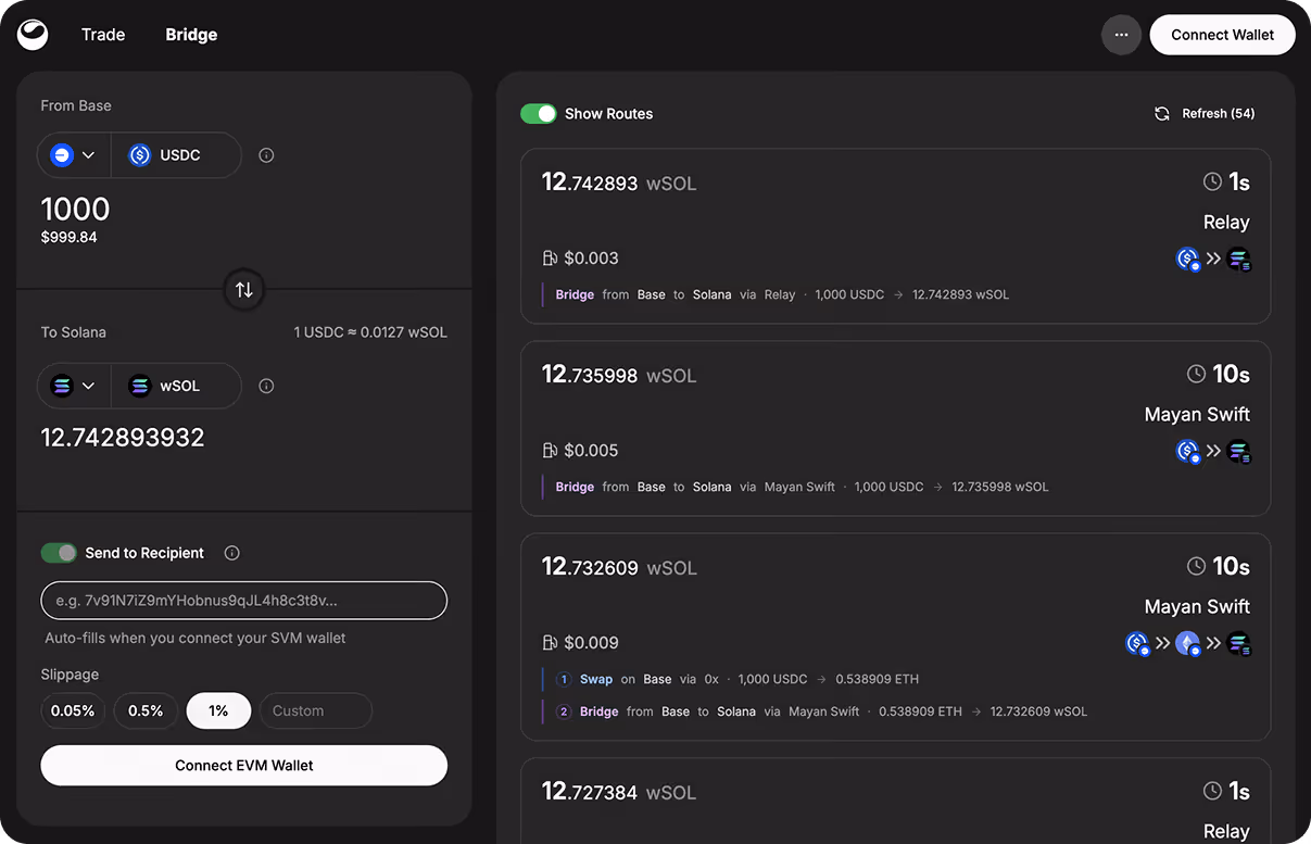 Make bridging feel like a swap with route discovery and execution that keeps users moving, and boost retention with clear error tracking.